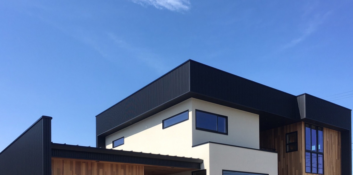黒のガルバリウム鋼板×白い塗り壁×無垢材をバランス良くまとめ上げた一棟。